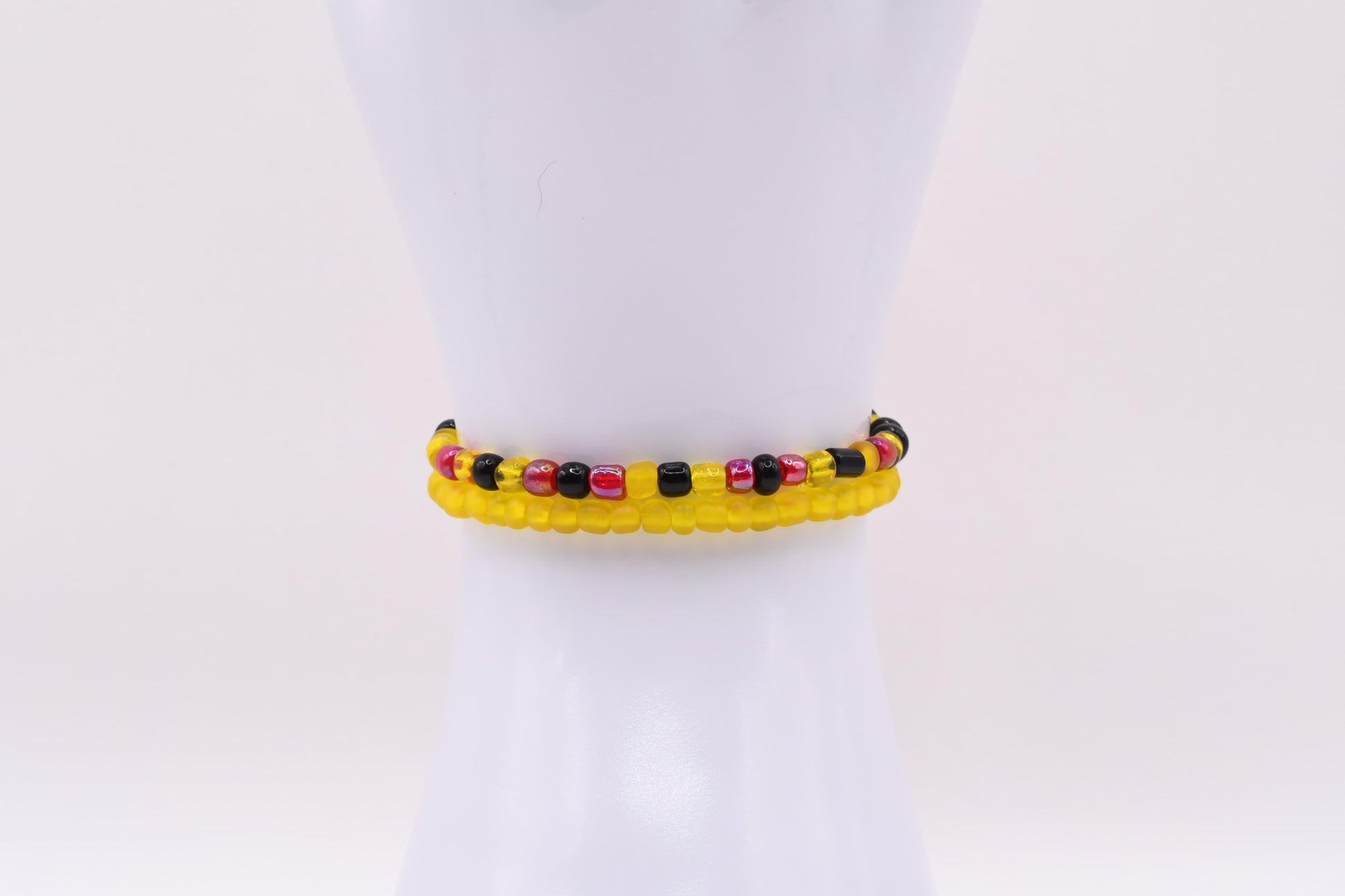 Warm, bright, and just a bit feisty — A Little Sun, With Spice pairs cheerful yellow beads with bold pops of red and black for a look that’s sweet and spirited. It gives summer laughter, golden-hour glow, and that playful spark that makes people look twice.