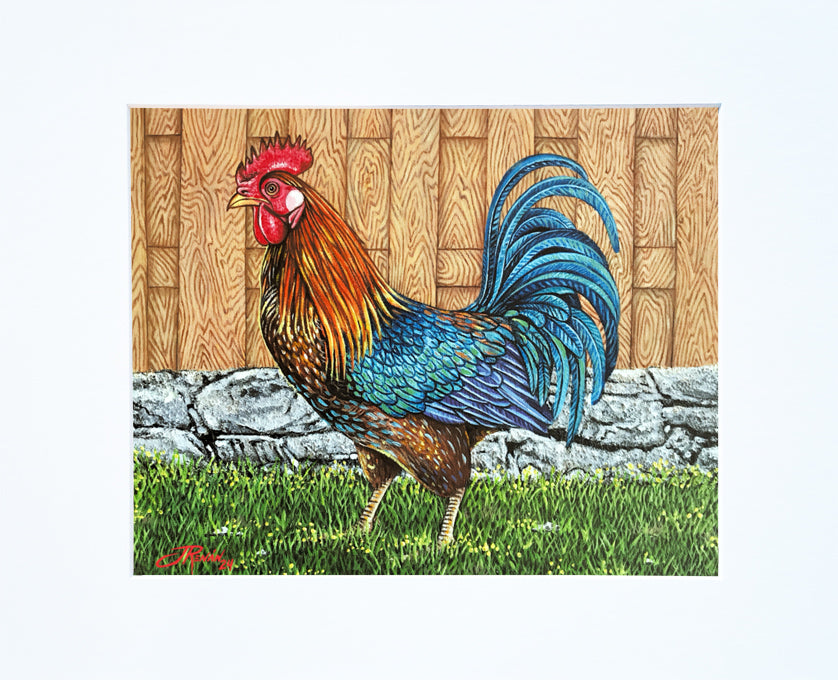 The Chick Magnet print features a vibrant rooster design measuring 7 1/2" x 9 1/2", expertly showcased with an 11" x 14" mat for a polished presentation. This print combines detailed artwork and optimal sizing, making it an ideal choice for collectors and décor enthusiasts seeking a distinctive focal piece. Its classic style and precise dimensions ensure versatility in framing and display.