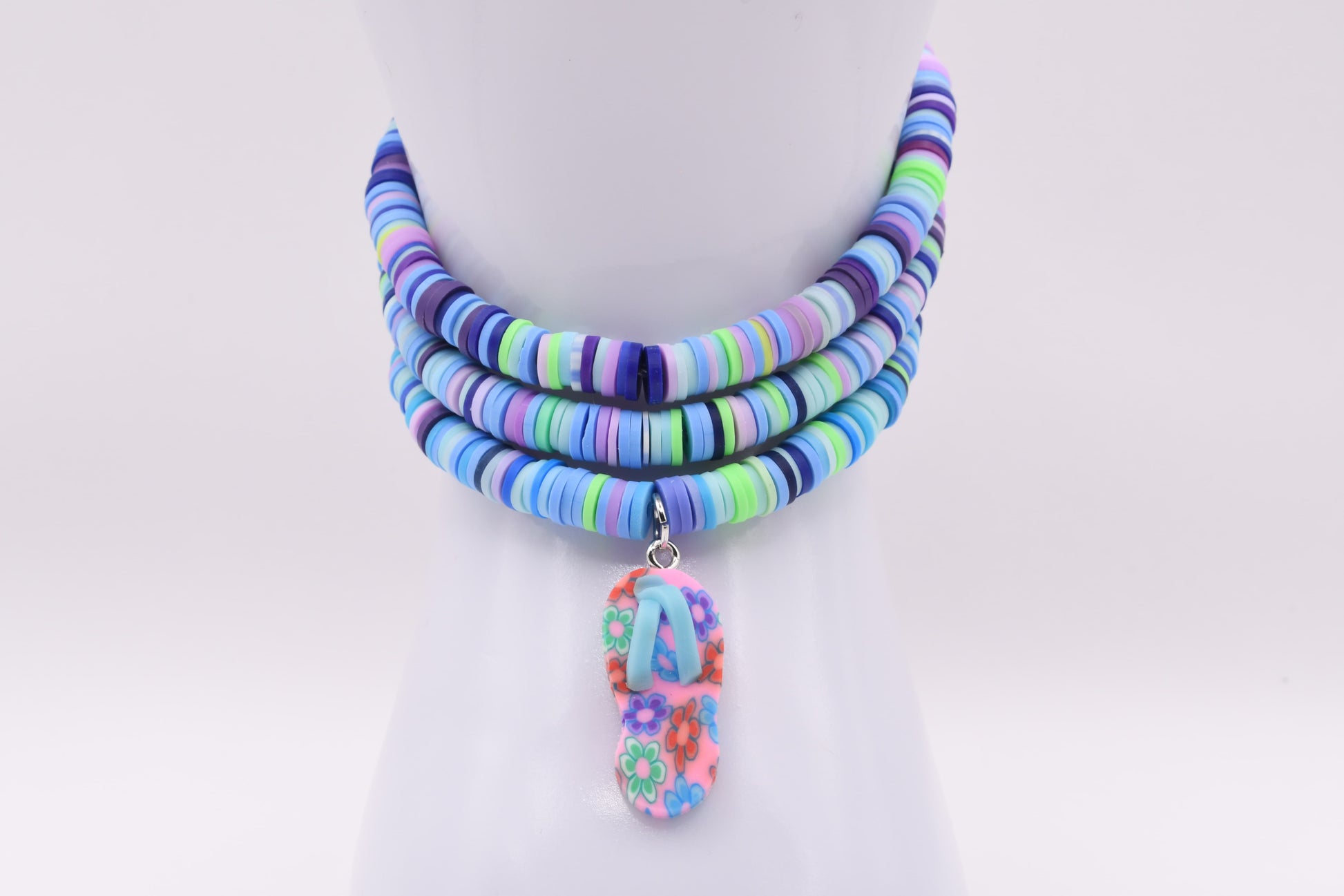 Soft ocean blues and candy pastels mix together in a breezy, coastal palette—complete with a cheerful flip-flop charm. Lighthearted, adorable, and ready to bring the beach wherever you go.