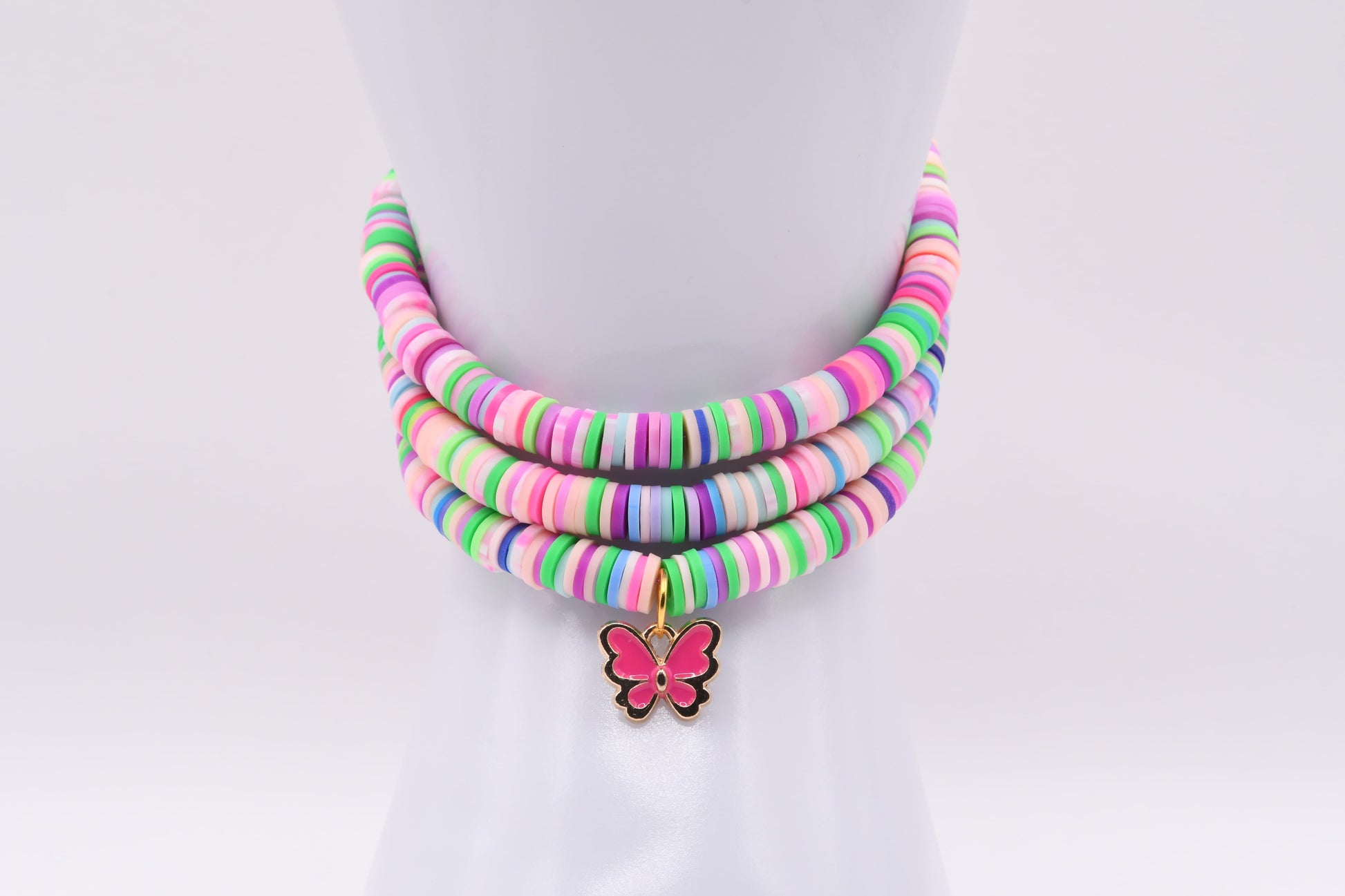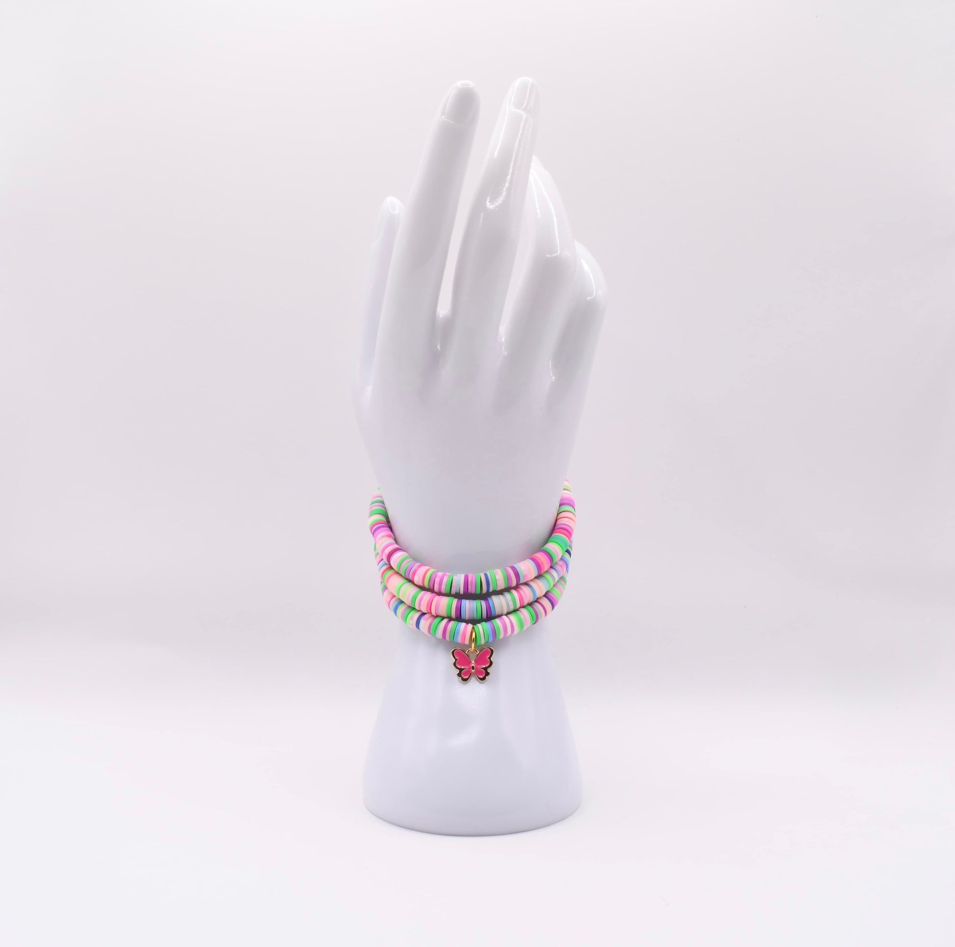 Soft as a spring breeze and sweet as wildflower petals, Garden Pixie is a pastel dream come to life. Striped in gentle shades of pink, lavender, mint, and green, it wraps your wrist in playful color and fairy-garden charm. Finished with a pink butterfly centerpiece, this bracelet is made for daydreamers, nature lovers, and girls who carry a little magic wherever they go.