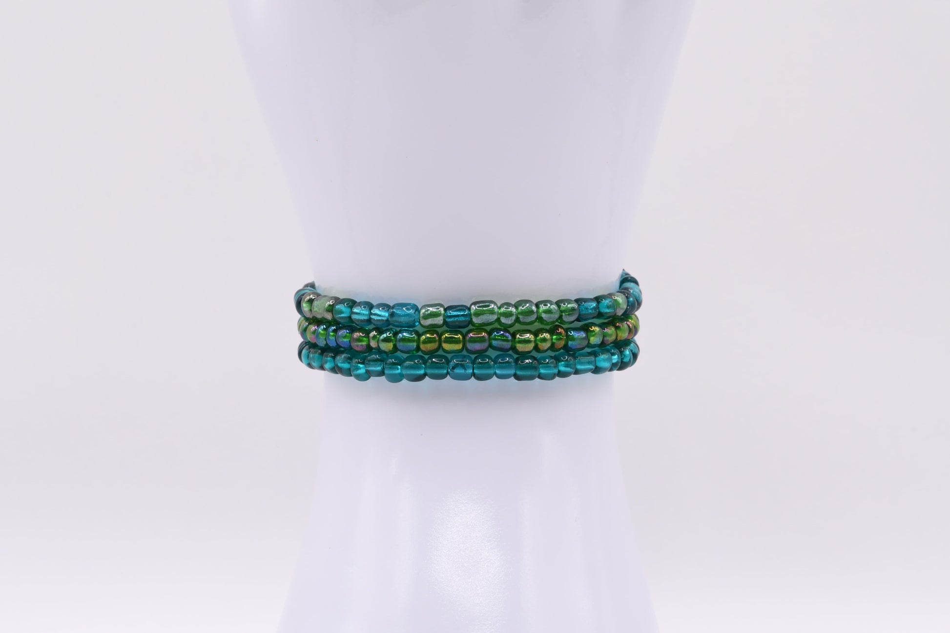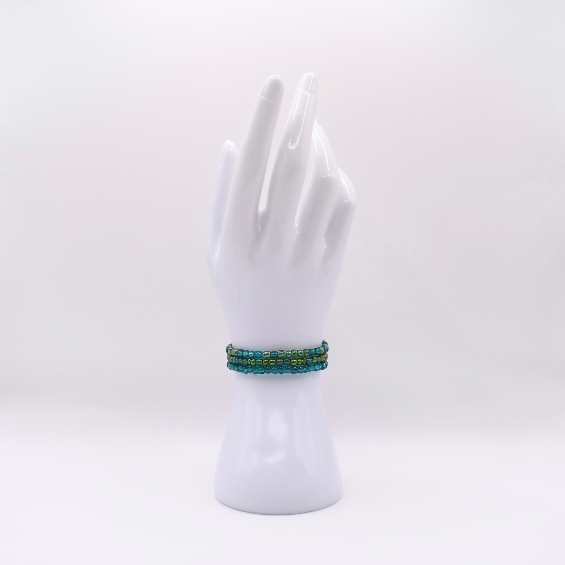 A gentle melody of ocean blues and sunlit green, Island Serenade carries the warmth of a coastal breeze and the calm of tide-kissed shores. The luminous beads shimmer like light dancing on tropical waters, creating a peaceful, effortless elegance. Wear this piece as a reminder of slow mornings, salty air, and the song of the sea that lingers long after sunset.