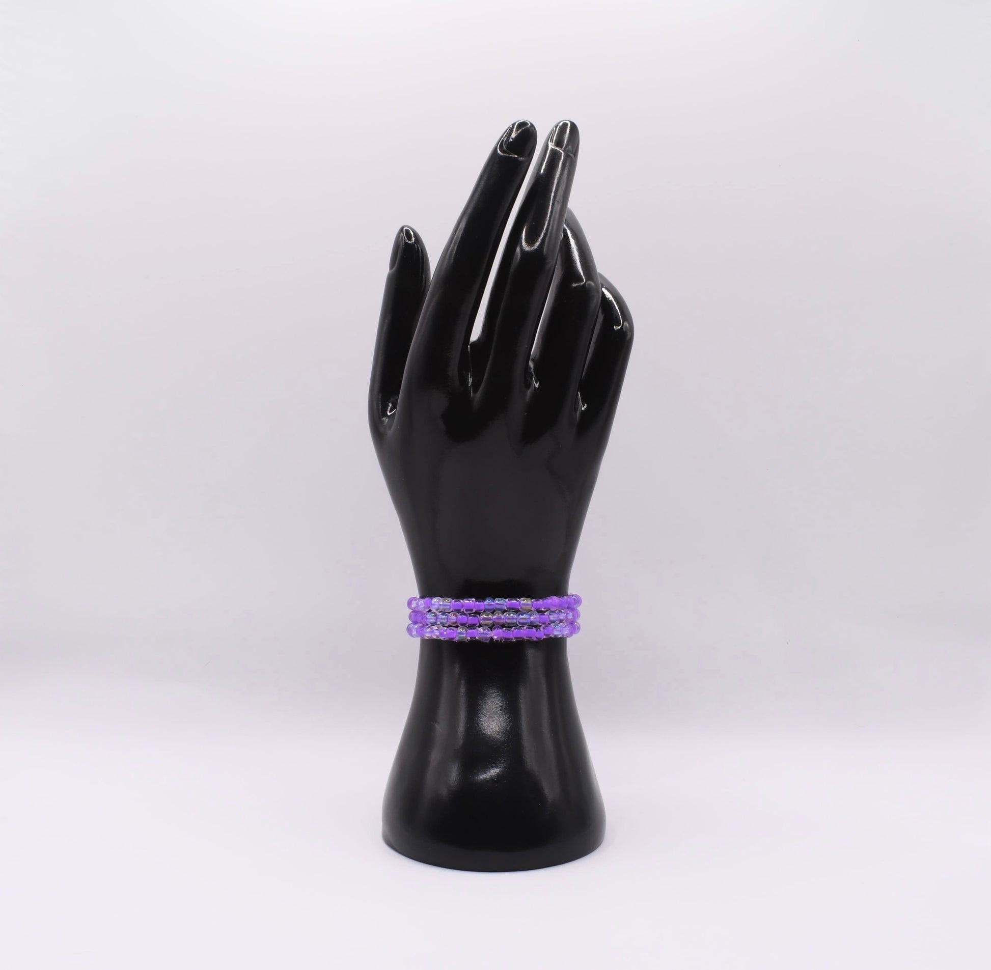 A whisper of lavender at dusk, where day meets the hush of evening. Three soft strands wrap the wrist like a gentle breeze through blooming fields - light, luminous, and quietly enchanting. A reminder that beauty can be subtle.