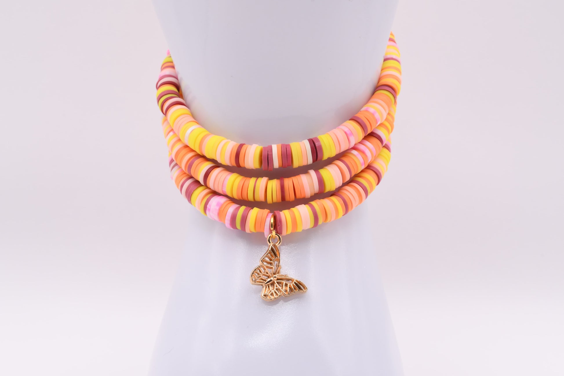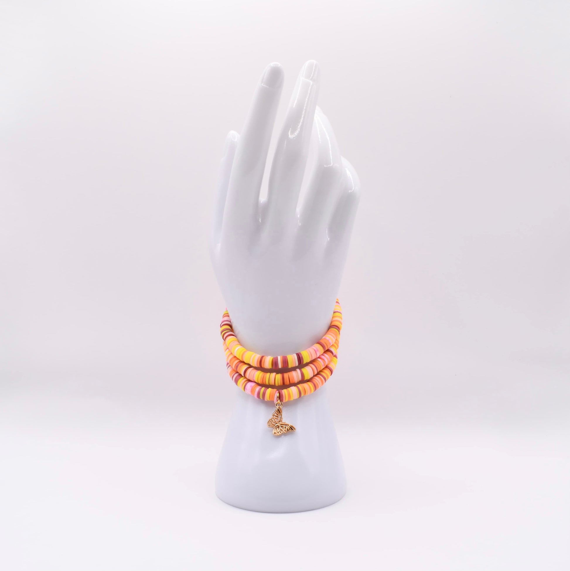 A soft bloom of warm peach, petal pink, and sun-kissed gold tones, layered with effortless charm. Papillon Rose is adorned with a delicate butterfly charm symbolizing growth, grace, and gentle transformation. Designed to brighten your day and elevate your everyday style, this piece feels like sunlight resting on your skin—subtle, sweet, and beautifully refined.