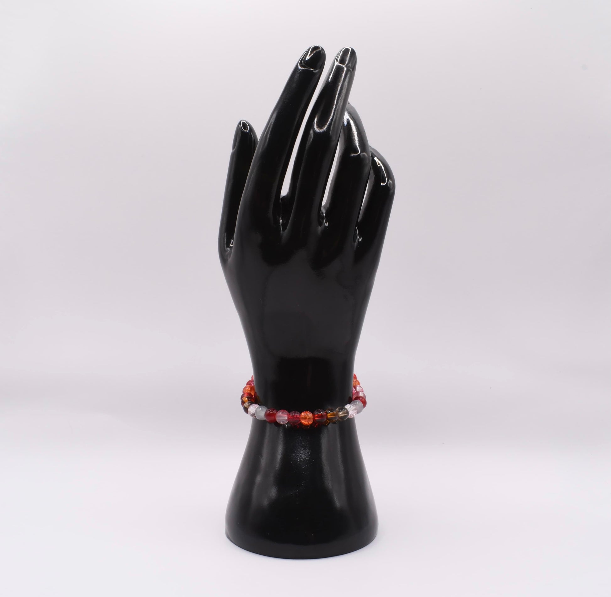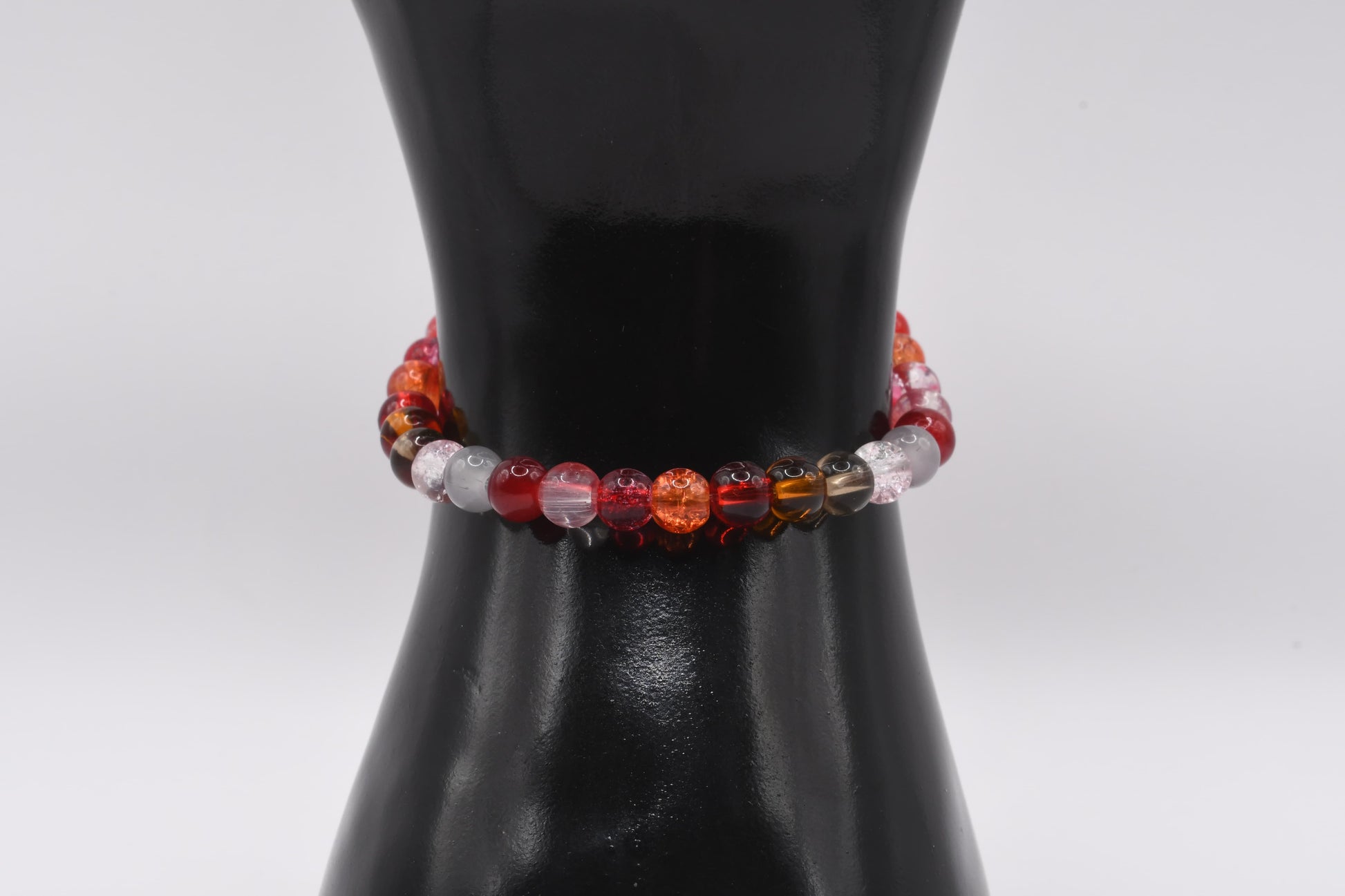 Vibrant and warm, Sunset Sangria dances with shades of ruby red, golden honey, soft blush pinks, and smoky amber. The colors blend like a summer sunset poured into a glass—rich, sweet, and glowing. This bracelet brings forward joy, confidence, and the spark of celebration. Wear it when you want your energy to feel bright, inviting, and full of life.