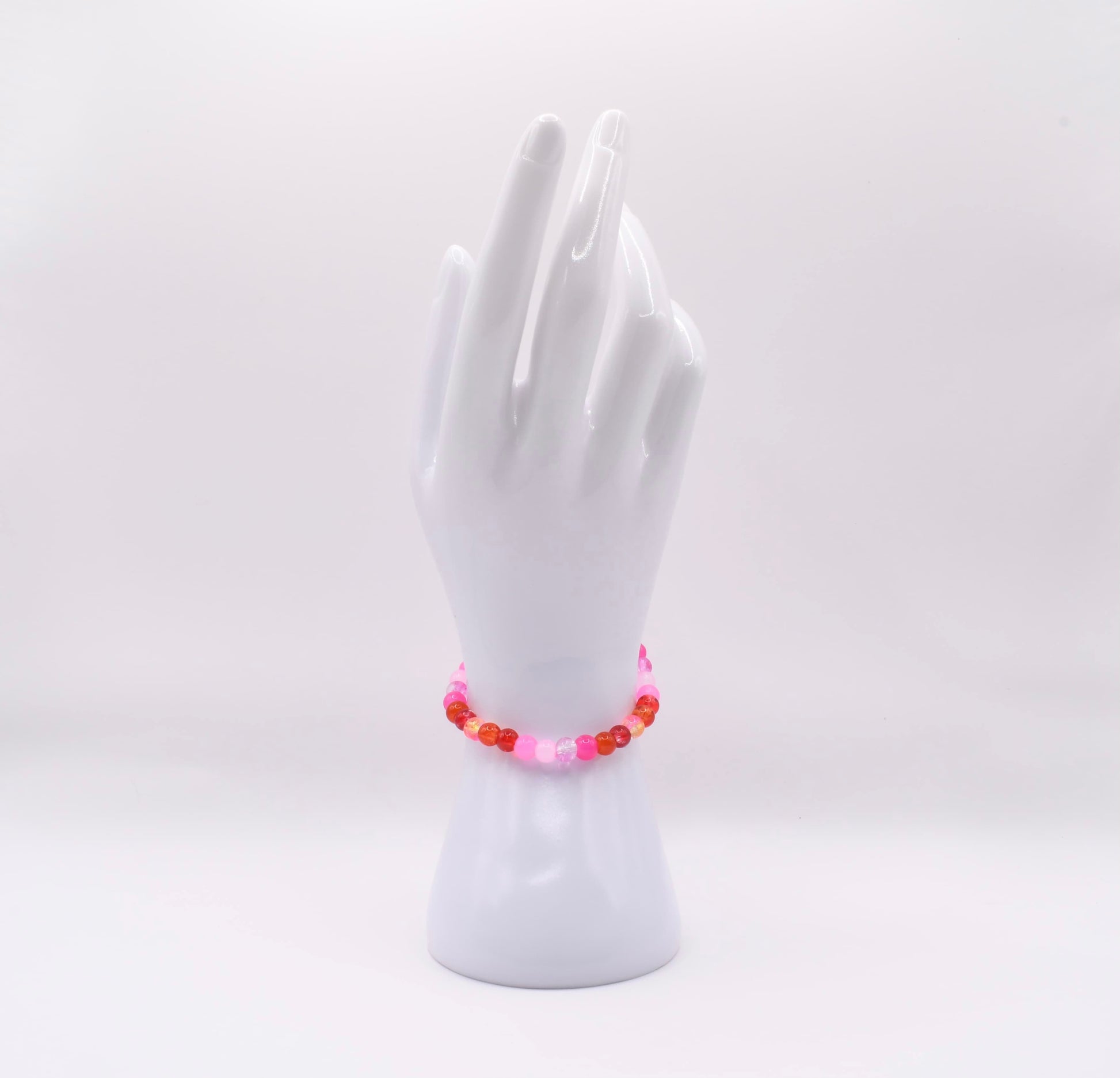 A playful swirl of bubblegum pinks and fiery reds, Sweetheart Spark captures the joy of bold affection and bright energy. This bracelet feels like laughter, warm cheeks, and the fluttery excitement of love in its sweetest form. Wear it as a reminder that your heart shines brightest when you let it be bold.
