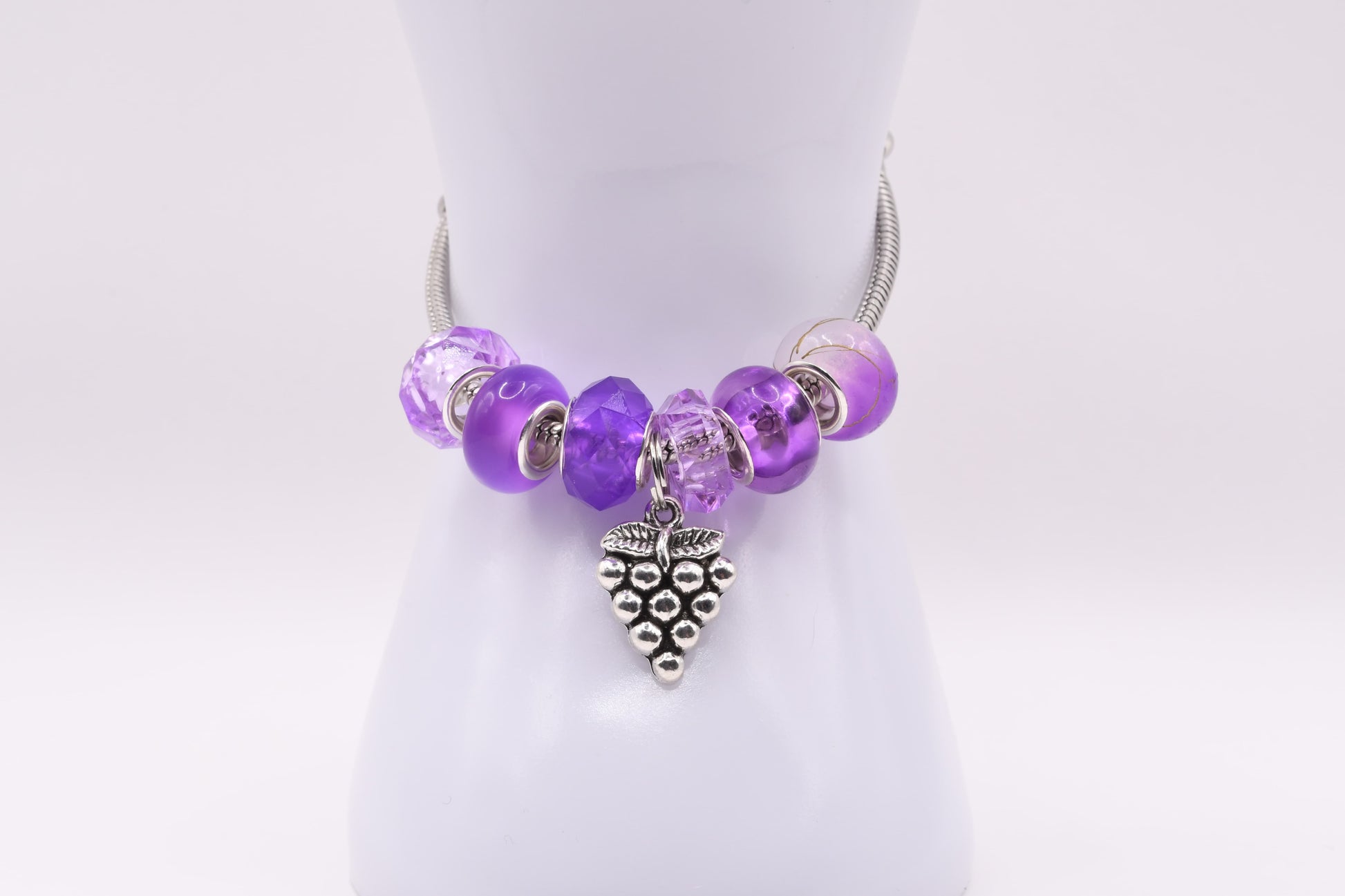 This elegant bracelet captures the lush beauty of a sunlit vineyard. With radiant amethyst, and lavender, each bead shimmers like a drop of fine wine. The silver grape cluster charm adds a touch of rustic romance - a perfect piece for those who savor life sweetest moments.